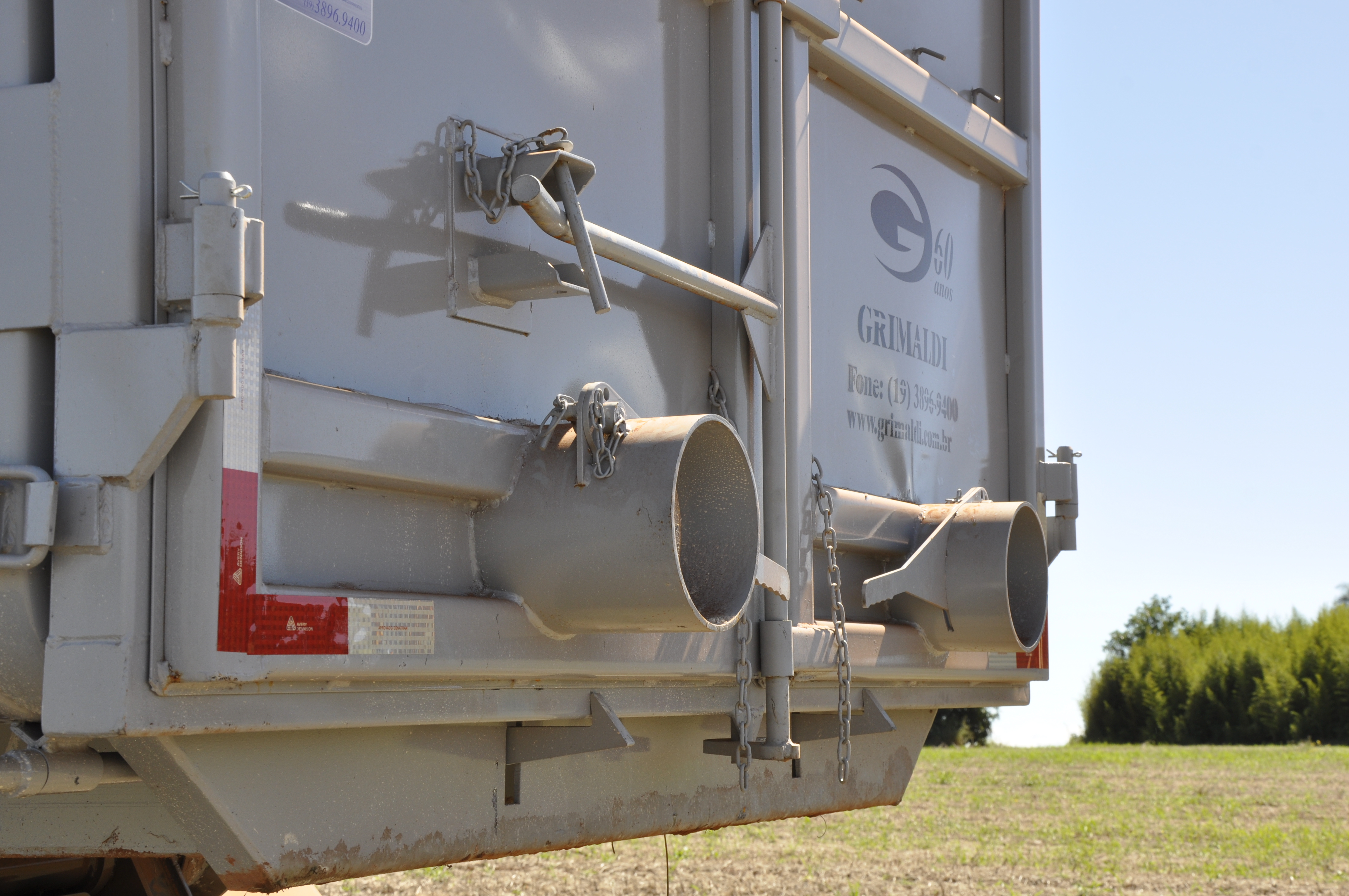 3Contêineres com rebaixo para operação com guindaste e garra.