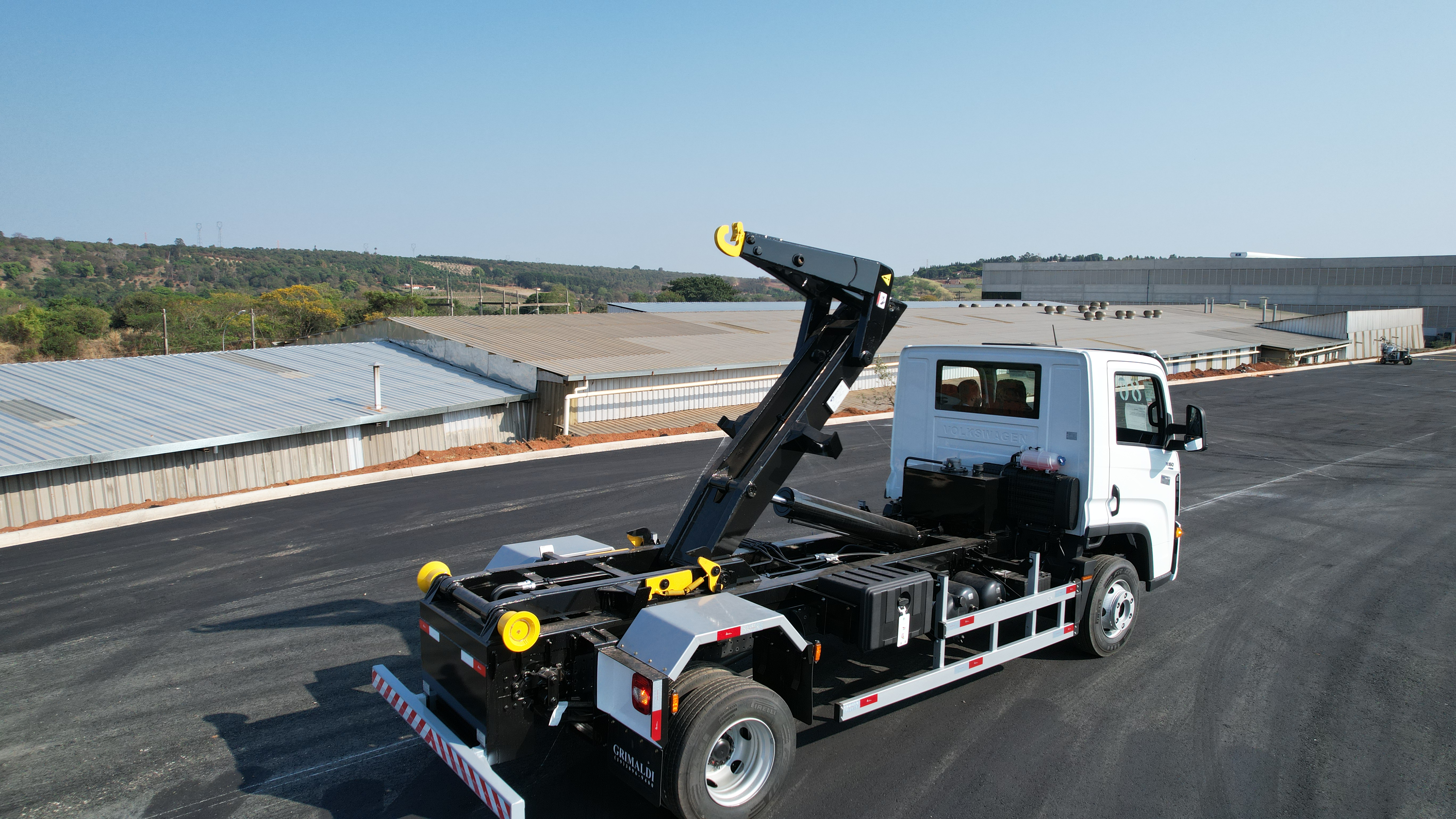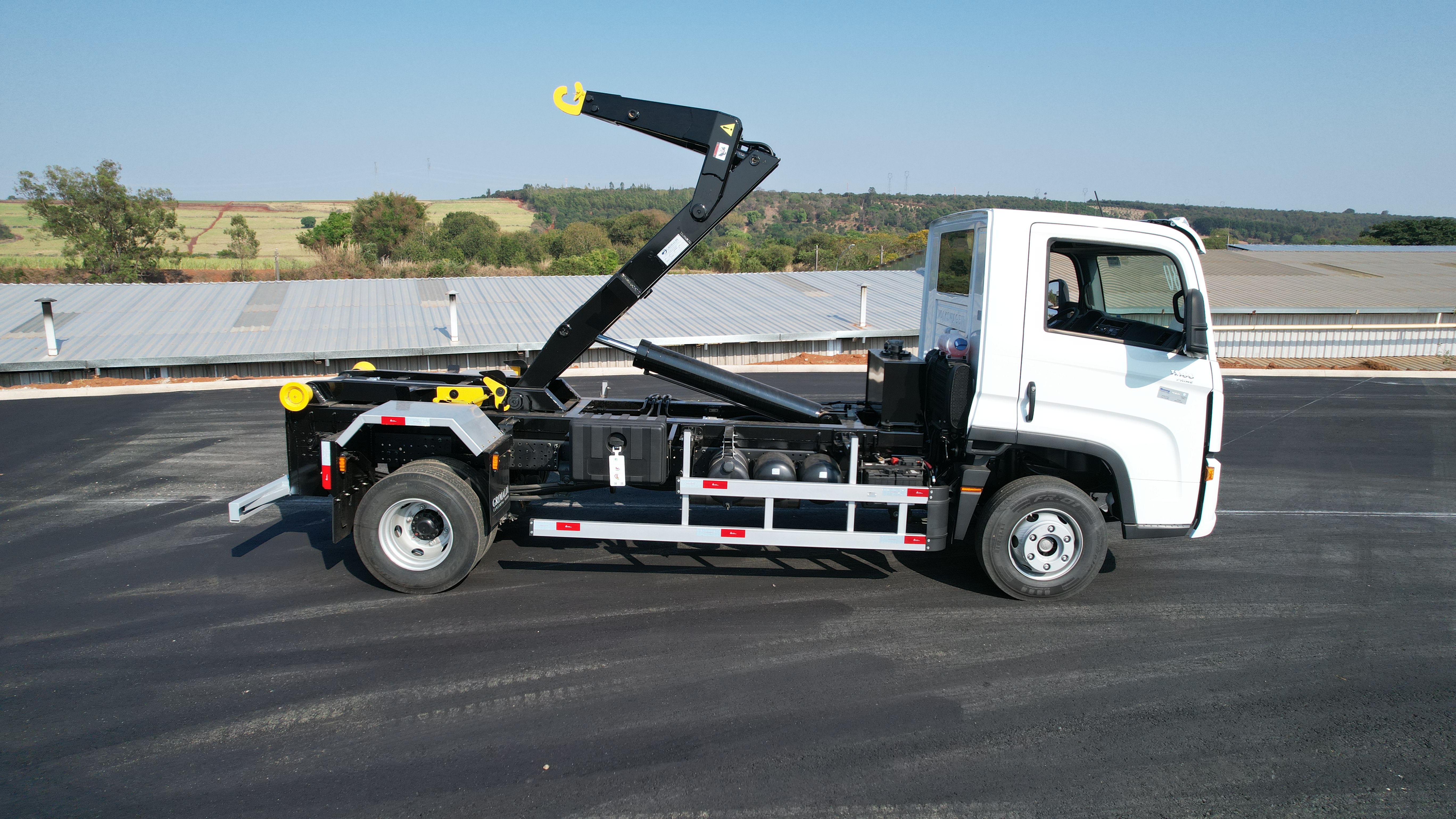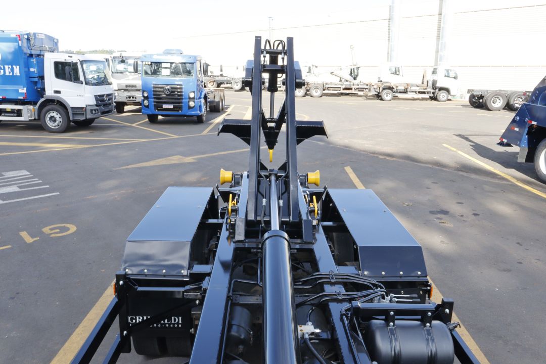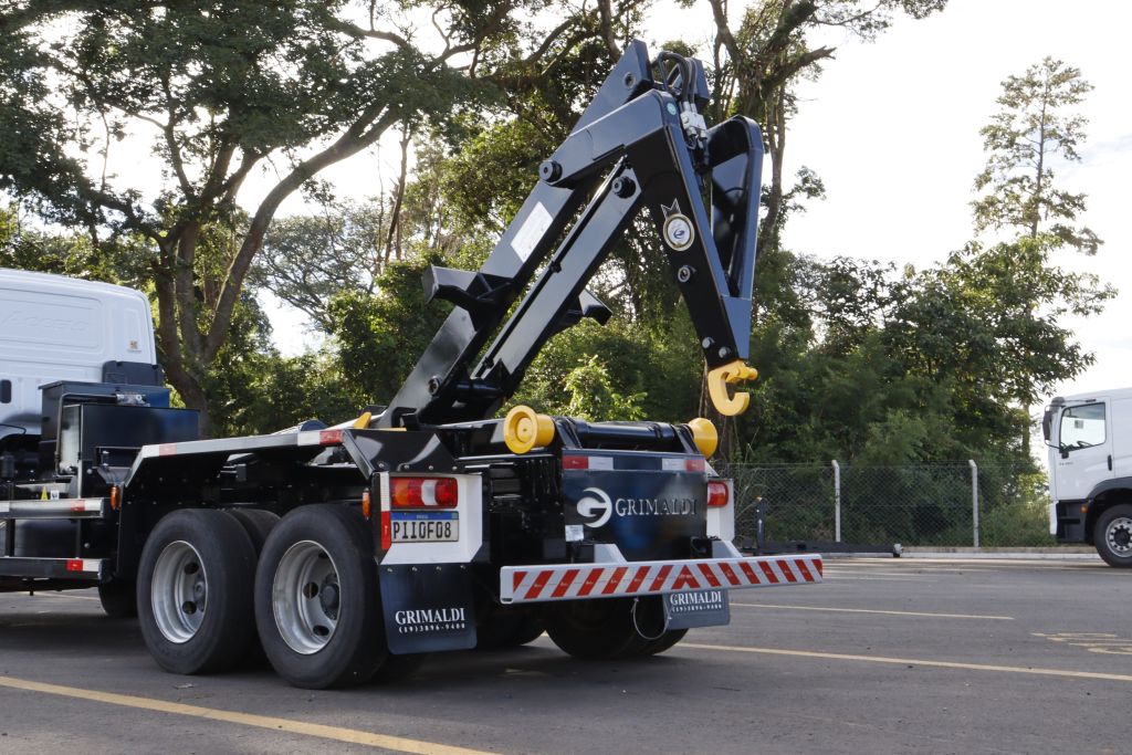 Sistema hidráulico otimizado para içamento, basculamento e transporte.